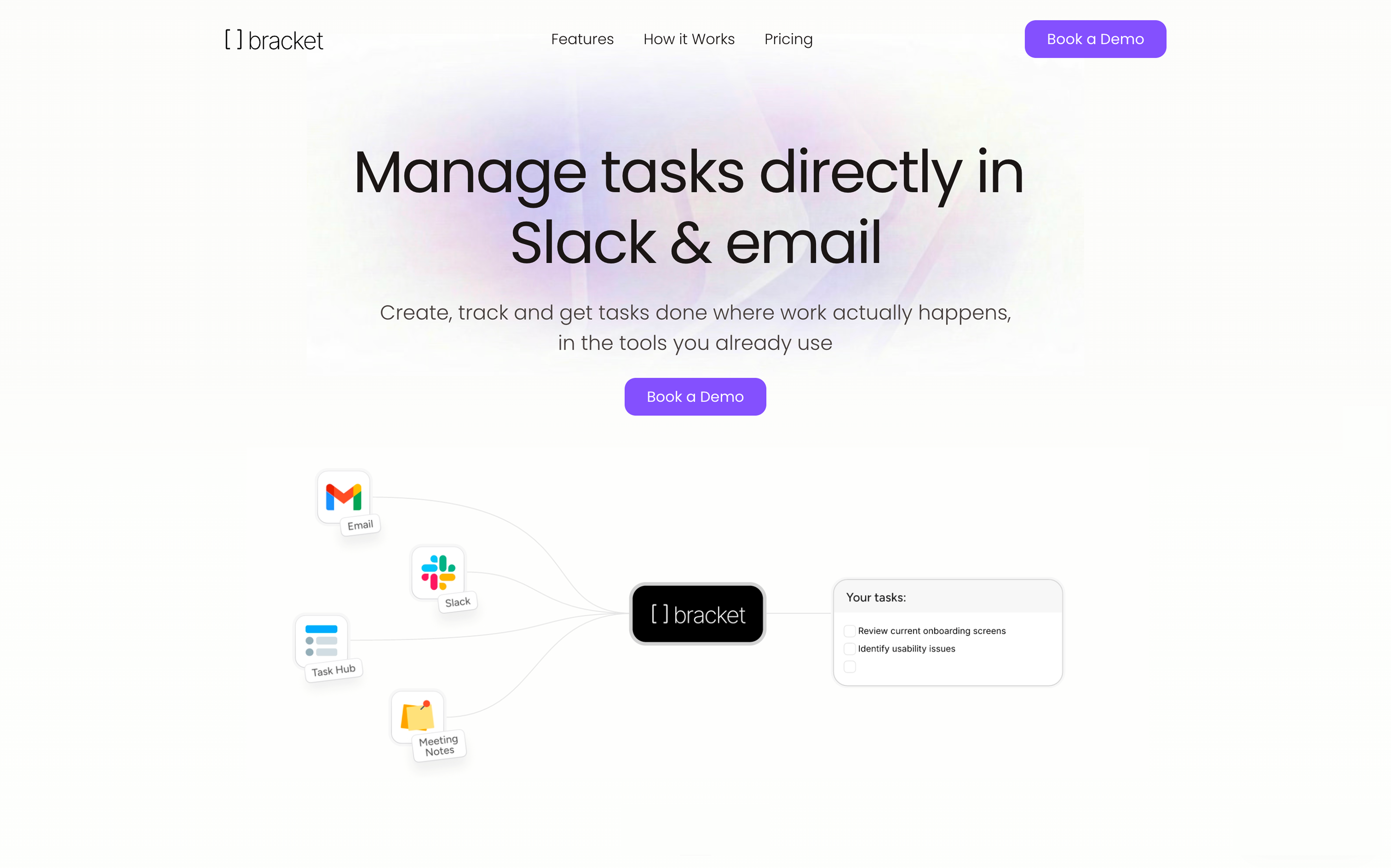 Bracket是一款在Slack和电子邮件内部运行的任务管理器。您只需在任何对话中提及@bracket,它就会自动创建任务、分配责任人、跟踪截止日期,并保持所有内容实时同步,无需任何人打开独立应用程序。